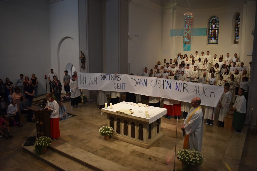 Nun soll mit allem Schluss sein. Matthias, du sollst – nach Vorstellungen des Bischofs – gehen. Das können wir so nicht hinnehmen. Deshalb haben wir uns innerhalb weniger Stunden mit aktiven und ehemaligen Ministranten getroffen und bis in die Nacht überlegt, wie wir unser Entsetzen in Unterstützung umwandeln können.